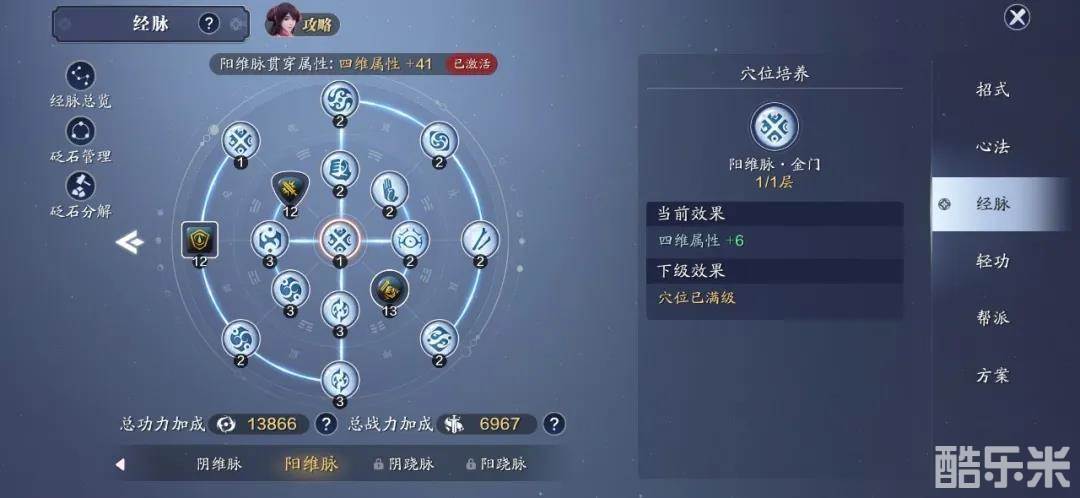 经脉提升:97级经脉没有开放新孔,但在原有穴位上升级消耗260个绿色石母,提升了79点功力。金色砭石全满级功力是13868点。98级可以升级6个三角石头升级,共需要9.3组绿色石母,银子都留一下哦。