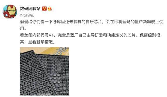 命名vivo V1! vivo自研芯片照片曝光X70系列首发