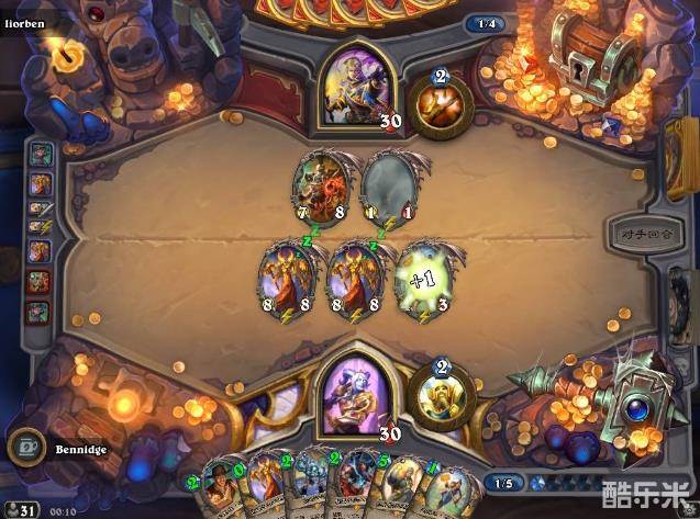 我先手空过,对面硬币然后用的减费牌,心想要坏,因为手里一把八费九费卡,结果他打出布林顿3000给我装备了一把战士招募斧子,我一斧子出的突袭犀牛吃掉他布林顿,他直接退了,两回合拿到卡包就是这么快。