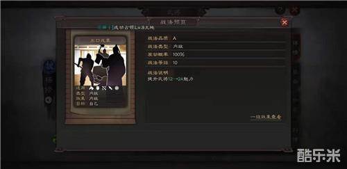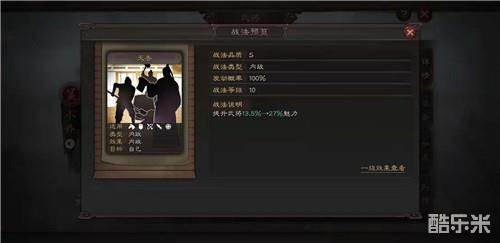 三国志战略版加魅力的技能有哪些?三国志战略版中内政型的武将虽然说不参与战斗,但是重要性也非常高,一名好的内政型武将能大副度提升资源的产量,内政武将中最主要的两个属性就是政治和魅力了,不过很多玩家还不清楚有哪些战法可以增加魅力,下面酷乐米网小编就为大家介绍一下。