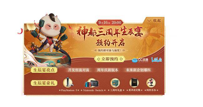 参与庆典弹幕互动的大人,还有机会获得《神都夜行录》特别准备的实体大礼,除了当下最具人气的游戏主机PlayStation 5与Nintendo Switch,还有降妖师们最爱的“阿织”手办,内容丰富尽显国风韵致的《神都夜行录》美术设定集以及三周年专属定制礼盒!