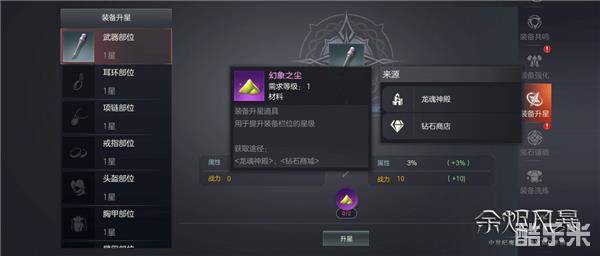 除了强化装备,升星也不得不重视起来。通过幻象之尘和银币等道具,让装备的星阶达到更高,也能带来更高的属性加成。在属性加成方面,呈现的是百分比的增益效果,所以只要材料和银币足够,那就优先将星阶提升,这样才能更快的累计属性增幅,才能和装备结合发挥出更高的实力。