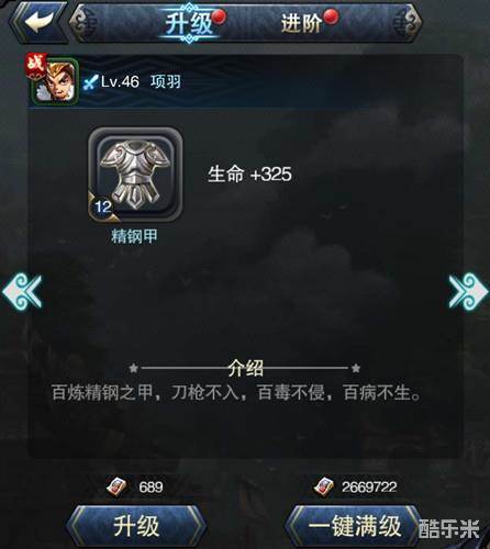 1.升级,带着将领去挑战或扫荡关卡和世外桃源,是升级最普遍的方式。也可以给将领使用经验丹快速升级!