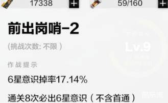 前出岗哨-2是意识关,该关卡可以掉落2~6星意识,而意识相当于构造体的装备,同名意识还拥有强大的套装效果。该关卡六星意识掉率为17.14%,且通关八次必出随机六星意识。