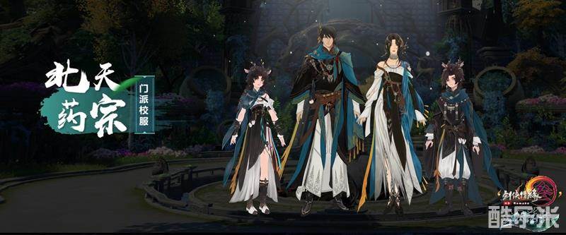 北天药宗本部坐落于中国东北部的深山密林之中,身赋自太古神农氏传承而来的草药医术,亦具神农遍尝百草,以医民恙的妙手仁心。因此药宗的门派服饰与中原地区有所区分,将部分少数民族服饰的特色元素融入校服设计之中,兼顾地域特征和实用性。披肩御寒,皮革腰带极具原始美感,其上挂有的皮质水袋和草药罐,更是将门派特色呼之欲出。服饰整体融入代表神药灵草的青蓝色,尽显轻灵秀丽之感,搭配代表深林土壤的棕褐色为底,大有圣手能医,悬壶济世的沉着胸怀。