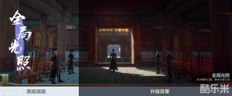 首先是全局光照实时动态效果。此前使用的全局光照覆盖范围较小,在技术革新后,新的全局光照无需光追硬件,全实时、全动态,能覆盖几公里的视距范围,提升画面的层次感和表现效果,画质突飞猛进,江湖焕然一新!