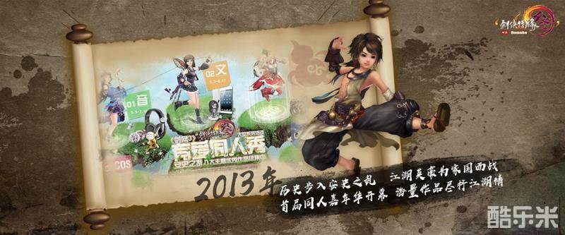 2013年,丐帮豪迈登场,安史之乱的战火打破了大唐的祥和,《剑网3》进入了一个新的篇章。这代表着我们给侠士们展现的《剑网3》世界观,不是枯燥的设定,而是有着清楚脉络的宏大史诗。同时,伴随着《剑网3》同人文化的繁荣,首届同人大赛在这一年开启。我们感谢每一位同人文化的创作者,是你们的创作让这片江湖更加鲜活、更加多彩!