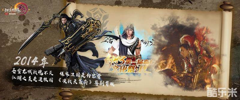 2014年,驻守边疆的玄甲苍云,在雁门关与狼牙殊死搏斗。在线下,《剑网3》开启了首届校园行活动。秉承“用年轻人喜爱的形式传承传统文化”的理念,《剑网3》携手广东粤剧院,打造了国内首部游戏改编粤剧《决战天策府》,演出后广受侠士好评,吸引了众多年轻人走近传统戏剧。《决战天策府》的后续巡演座无虚席,成功拿下了2015年戏剧票房双冠军,屡获大奖!