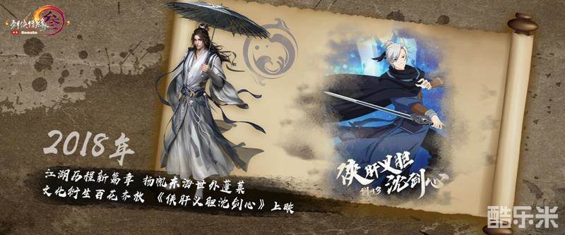 2018年,侠士远赴东海,相逢蓬莱。剑网3动画番剧《侠肝义胆沈剑心》第一季在这一年上线,诙谐幽默、辛辣讽刺,用最接地气的方式,说最地道的江湖故事。