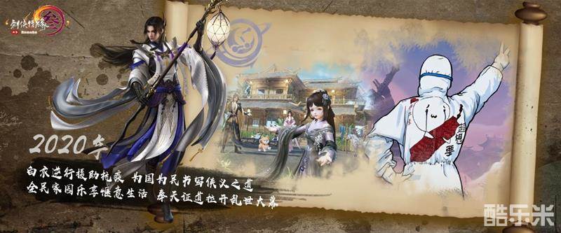 2020年,疫情牵动所有人的心,《剑网3》响应防疫号召,率先开启免点卡活动,携手有爱侠士一同为武汉抗疫一线捐助医疗物资与资金超过186万元。为了感谢逆行抗疫的白衣天使,我们为白衣逆行者送上了专属称号与永久免费点卡。同年,我们实现了全民家园,结庐江湖,悠哉惬意。衍天宗年底现世,“奉天证道”资料片拉开乱世大幕!