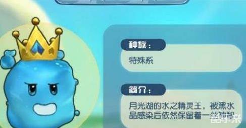 沃特尔王精灵的外形有些特别,是一个带着皇冠的水滴形精灵,表情有点愁眉苦脸的,不过了解清楚沃特尔王的情况之后大家也能理解为什么沃特尔王会是这么一个表情,沃特尔王是被黑水晶感染了,不过仍然有着一点神智,所以表情略显一点狰狞。