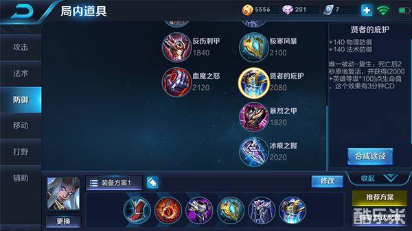 六神装:冷静之靴、不死鸟之眼、霸者重装、极寒风暴、魔女斗篷、贤者的庇护