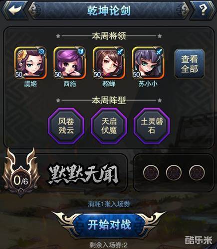 在乾坤论剑中,你和对手所有的将领和阵法都是系统分配的,与自身将领的战斗力毫无关系。