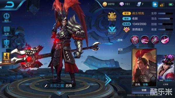 【饕餮血统】:吕布拥有极远的攻击范围,如果方天画斩打到敌方英雄的话,还可以为自己的武器附加附魔效果,吕布的方天画斩技能能够命中目标所来的真实伤害非常的恐怖,单挑更是不虚任何英雄,唯一的威胁就是被放风筝。