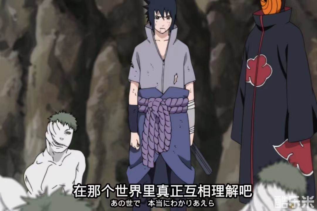 佐助表示自己不会死掉,死的只会是鸣人自己,鸣人说那可不行,要死得一起死,卡卡西实在听不下去了,他告诉鸣人说佐助由他来对付,毕竟鸣人还有一个成为火影的重要梦想,没必要陪佐助一起陪葬,但是鸣人却说,连自己的同伴都救不了的人,还有什么资格去当这个火影,卡卡西一听也便作罢了。
