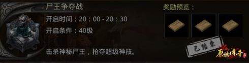 每周1、2、4、5的20:00-20:30开启,在活动期间可以在NPC尸王封印者(盟重311.298)进行传送到活动地图,只能进行单人挑战。