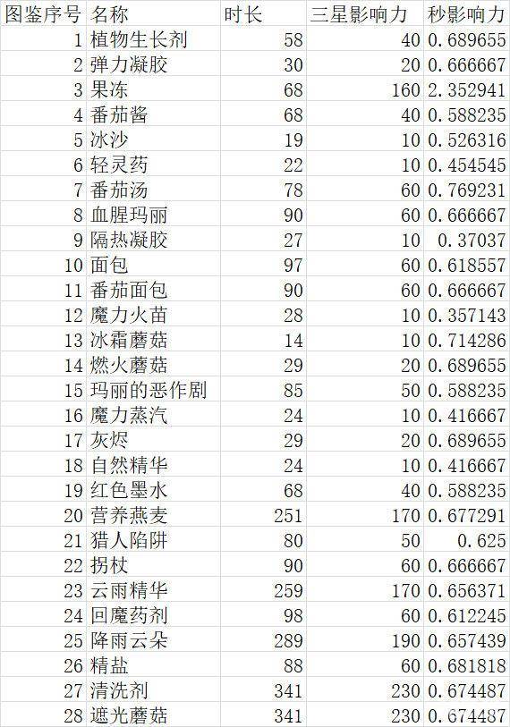 研发条件: 魔法冰泉 【大量】、黄金小麦 【少量】、丛云果 【少量】