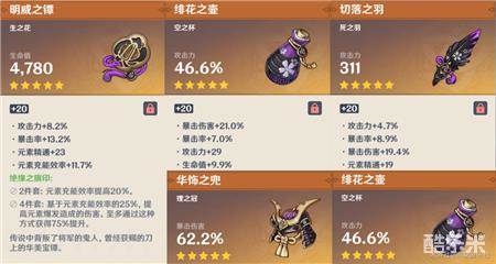 绝缘套属性选择:充能、双暴、攻击、雷伤。充能沙锁死,主词条目前只有这个位置有元素充能效率。当队伍内存在班尼特或九条裟罗时,雷神选择暴击头、雷伤杯,若是无增加攻击力的辅助时佩戴攻击杯。理由如下: