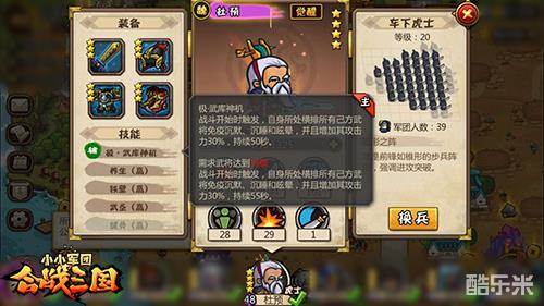 耽思经籍,尤爱左传,博学多才,被称为“杜武库”。在《小小军团合战三国》中,其主动技能【武库神机】战斗开始时触发,自身所处横排所有己方武将免疫沉默、沉睡和眩晕,并且增加其攻击力,持续数秒。