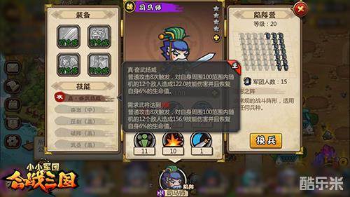 司马懿长子,与其父共同诛杀曹爽,其父死后,任大将军辅政,大权独揽,朝廷纲纪整肃。其主动技能【奋武扬威】普通攻击数次之后,对自身周围一定范围内随机数个敌人造成一定的技能伤害,并且恢复自身方阵所有模板一定的生命值。