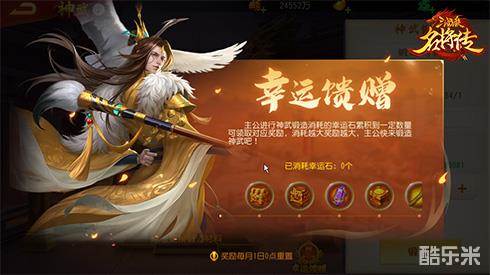 神武玩法为了让主公能够有更多成就感,以及有更多资源福利的获取来源,加入了一个幸运石累计消耗奖励,锻造消耗的幸运石达到一定数量就可以领取指定的奖励哦。