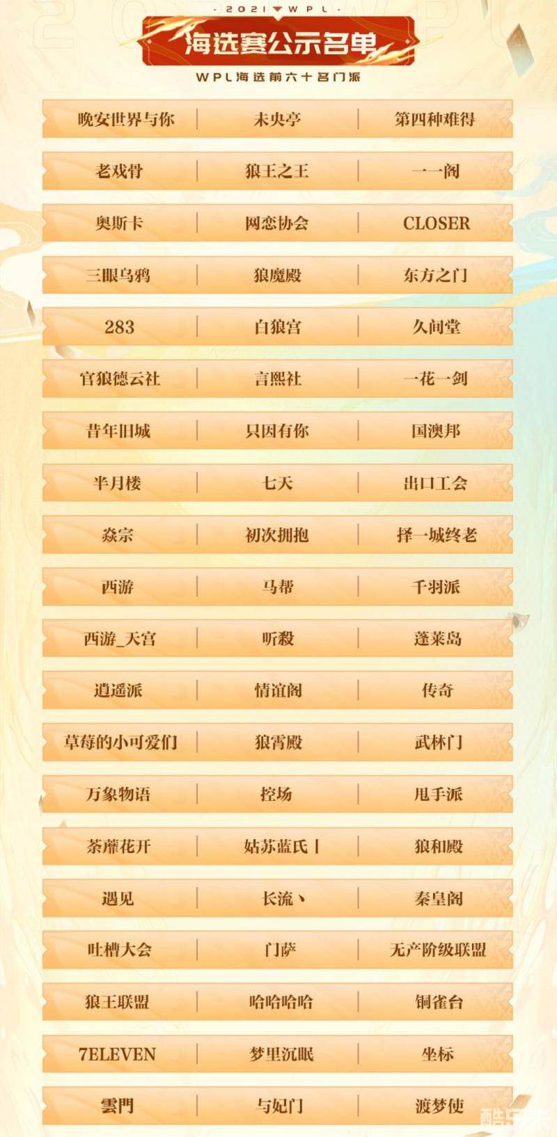 WPL2021线上海选赛已经圆满结束,本次线上海选赛共计四千支门派参赛,经历了近五万场对局,最终晚安世界与你等六十个门派成功晋级线上淘汰赛阶段。在线上海选赛阶段中,各门派都使出浑身解数,充分参与到比赛中来,贡献了一场又一场精彩的狼人杀对局。