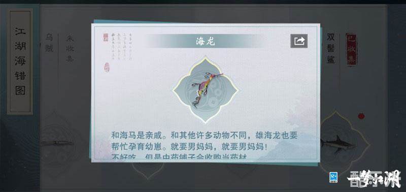参与活动,搜集足够的饵料,少侠就可以在南海的指定地点进行捕捞,捕捞到不同品种的海洋生物都会被收录进江湖海错图,少侠们可以在里面查看对应的海洋知识。少侠还可将捕捉到的鱼类暂放鱼缸中,便于观察记录,不过完成海错图的编撰后可要记得放它们回大海哦!