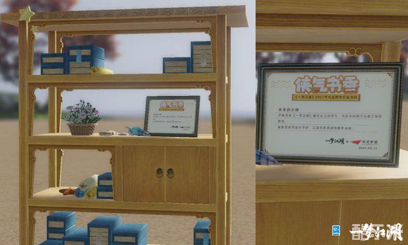 赠人书籍,手有余香,为了感谢少侠们对乡村孩子的付出,一梦江湖特别为大家准备了公益纪念家具!如达成2000册最高捐赠目标,参与过活动的少侠都可以获得活动家具“侠气书香·柜”与限定金色称谓“山海远隔,犹同一心”。