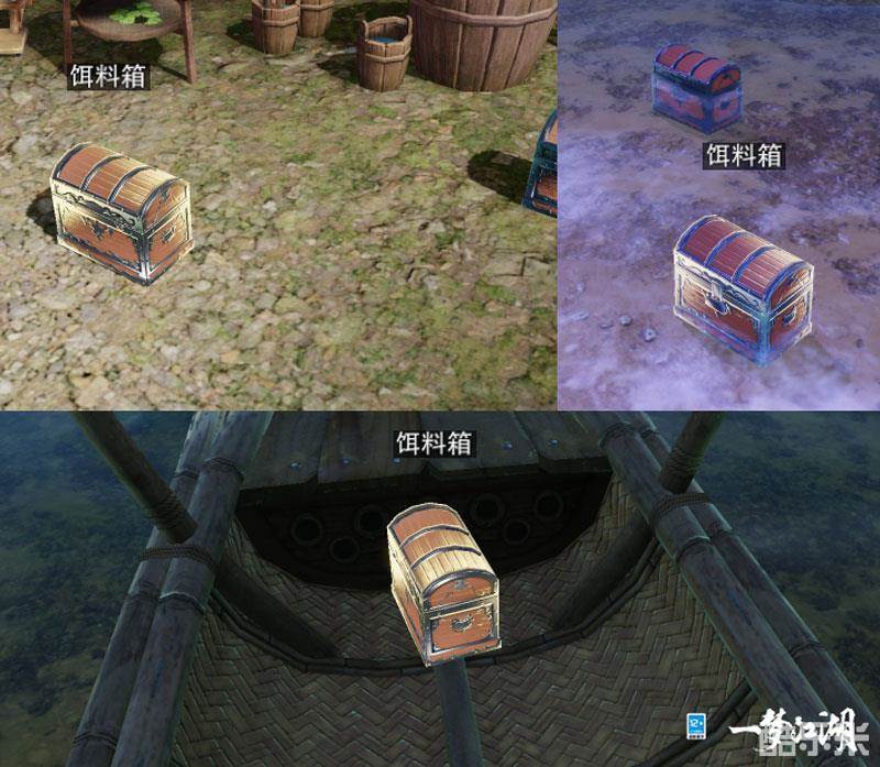 南海渔民众多,海边随处可见不少饵料箱,当地居民的院子里也都常年备着饵料,在这里总共有四种不同的饵料可供少侠们获取。不同的饵料可以捕获不同的鱼类,少侠们可以通过图鉴查看不同鱼类的捕获条件。