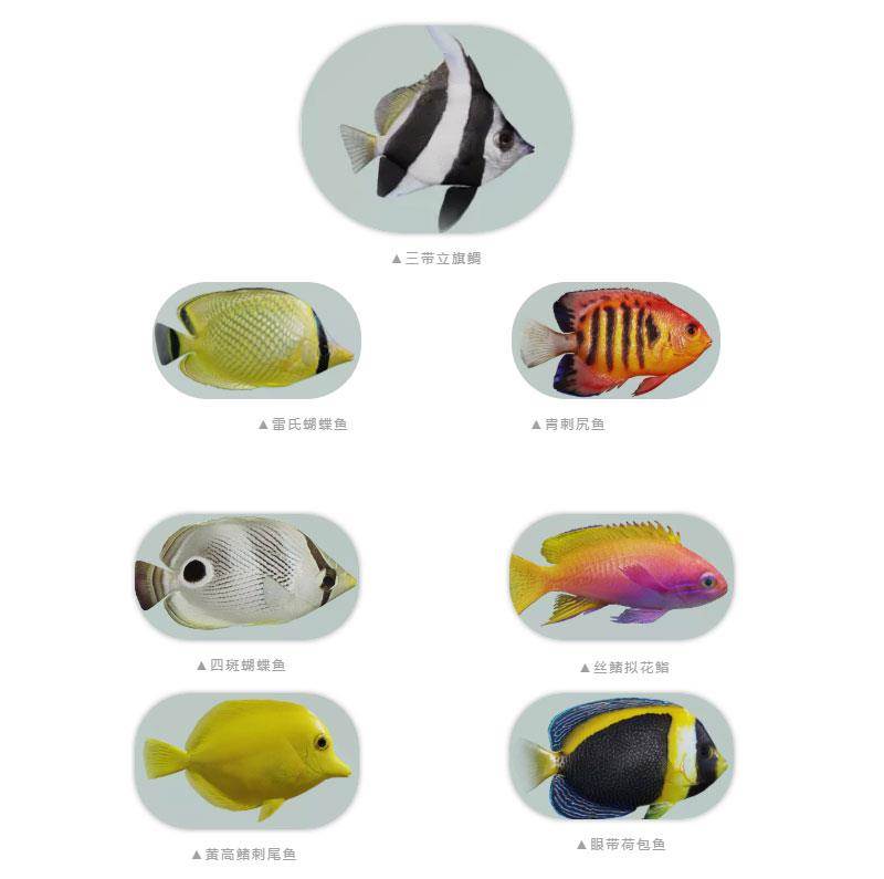 青蟹、帝王蟹、寄居蟹。底生物万万千,帝王蟹虽然是寄居蟹的亲戚但它并不是螃蟹,奇怪的知识增加了!除了蟹类,还有好多不同的鱼类,当地居民经常把它们中一些漂亮的小鱼卖到中原做观赏鱼。四斑蝴蝶鱼、丝鳍拟花鮨、黄高鳍刺尾鱼、眼带荷包鱼……此外,也有一些习性比较有趣的鱼类,幼年自闭长大爱社交的三带立旗鲷、胆小但爱吃肉的雷氏蝴蝶鱼、俗名火焰神仙的冑刺尻鱼……不建议吃,都很贵!