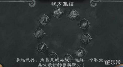 配方集结是一个老形式的新乱斗。不用组牌,选一个职业就可以直接以暴风城预组套牌开始游戏。