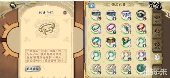 2、天地劫豹牙手环是天地劫这个游戏和仙剑联动的饰品,由于是活动限定,玩家只能在老毛商坊购买仙缘宝箱来获取豹牙手环。