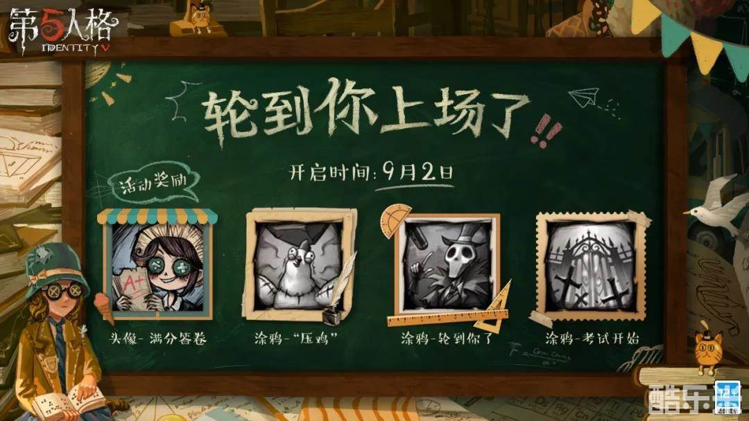 9月2日,《第五人格》开学季活动“轮到你上场了”启动,玩家们只需完成登录、对战等任务,即可获取头像-满分答卷、涂鸦-“压鸡”、涂鸦-轮到你了和涂鸦-考试开始等奖励,让开学季的氛围充满庄园,也让每一位玩家都感受或重温欢乐纯真的校园追逐时光。