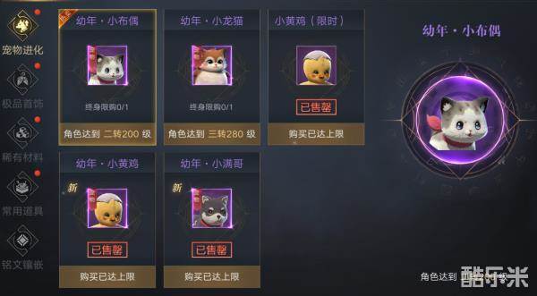 入手宠物时,它们仅仅是幼年形态,伴随着进阶成长自然也会变得更强,为玩家带来更多的增益和崭新的外形。