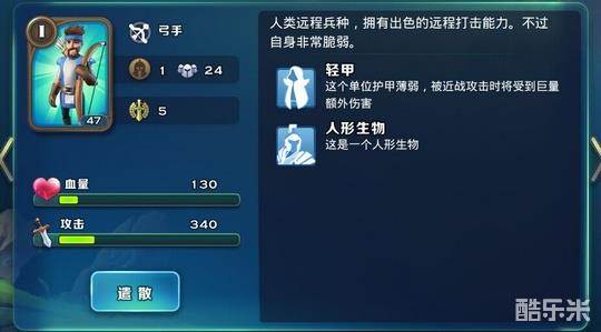 剑士:皮糙肉厚的剑士是防御的中坚力量,并且剑士到了金卡后士气不会崩溃,可有效的防止敌人进攻。