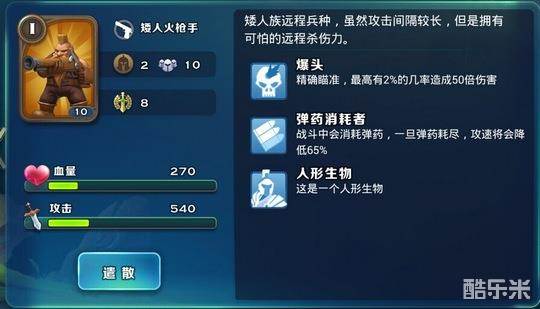 火枪手:矮人火枪手的爆头伤害非常恐怖,未升级的情况下就能造成50倍伤害,如果有幸爆掉对方的金卡,绝对能让敌人血亏。