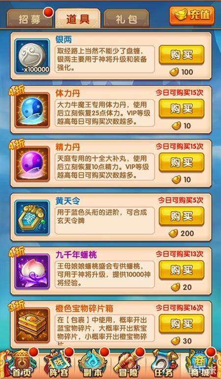 这点是所有新手都会忘记的一个,毕竟神将商店没有任何特殊,很多人都认为这是搭钱,久而久之就不再关注。但不能因为一时的失利而认为神将商店没有用,除了会出橙将碎片外,还有一定几率出完整的橙将,是游戏中刷将的最佳场所。除此之外还会出一些突破丹和天命丹,这些都是比较稀有的道具。