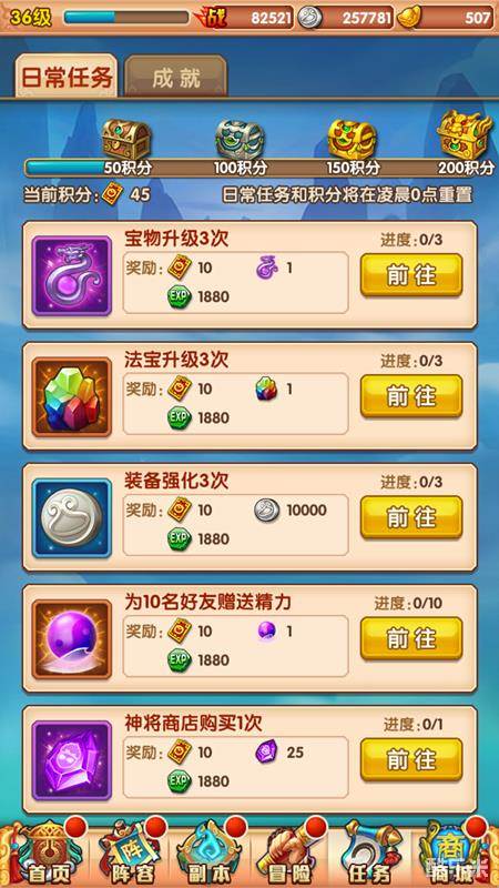 本人有种强迫症,只要看见小红点就想点没,而把所有小红点都点没后,每日任务就已经做完大半,而之后任务直接点进去做就行,十分简单,没有任何难度。而每日任务给的奖励也还算不错,宝箱中有体力丹,还有元宝奖励。