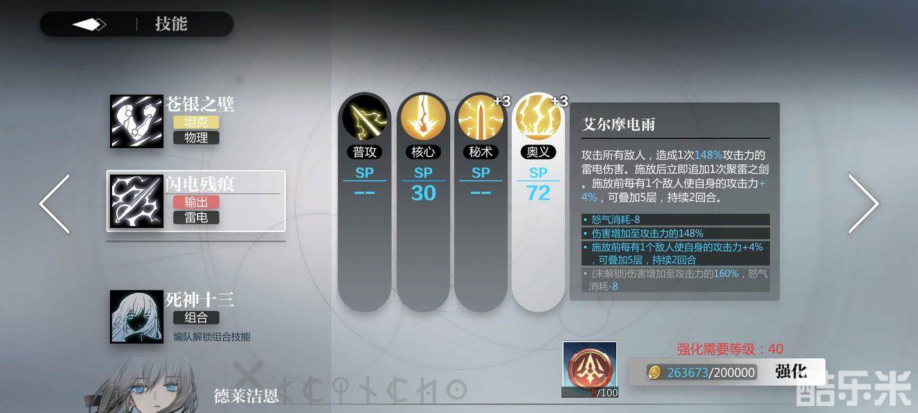 重点就是这个技能,多段伤害只记一层,但是聚雷之剑也是可以叠加一层的。也就是说从第一次触发聚雷之剑开始,后续每四次雷电技能就可以触发一次。那么只要卡好被动层数即可在破盾输出回合打出三次聚雷之剑
