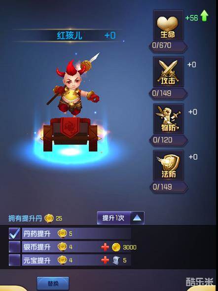 提升能够额外增加英雄的生命、攻击、物防及法防属性。每次提升都有可能改变英雄的属性值,满意当前的提升结果,可以选择替换属性,不满意时可以继续进行提升操作。