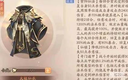 经过培养后,满星状态下的太极仙衣,依靠【紫阳仙法】可以在大回合结束的时候回复自身最大生命值35%的血量,同时请注意!!!80%概率暴击回复双倍,也就是70%最大生命值的血量。