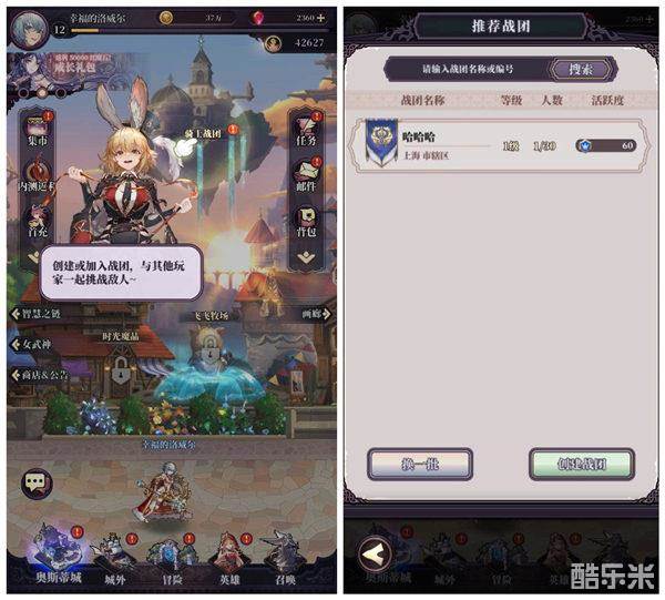 战团功能在推图关卡通关到2-20即可解锁,点击主城,在右侧的飞飞牧场的上方,点击进去后,首先是推荐战团列表,医生可以选择选择你喜欢的战团,如果不想加入推荐的战团,医生也可以自己花费一些红魔石来创建。