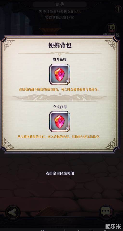 通过宝箱获得红魔石会藏入背包的内层,其他参与者无法抢夺,可以随时在便携背包中查看自己的收获。
