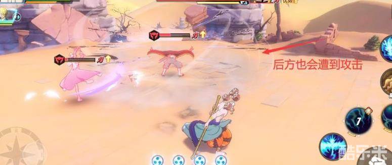 躲避技巧:这个技能攻击范围是他的周围一圈,其中前方攻击区域会大一点。在躲避时,我们直接往左右两侧闪开,这里就不建议往后闪了,因为后面也是会被攻击到的。