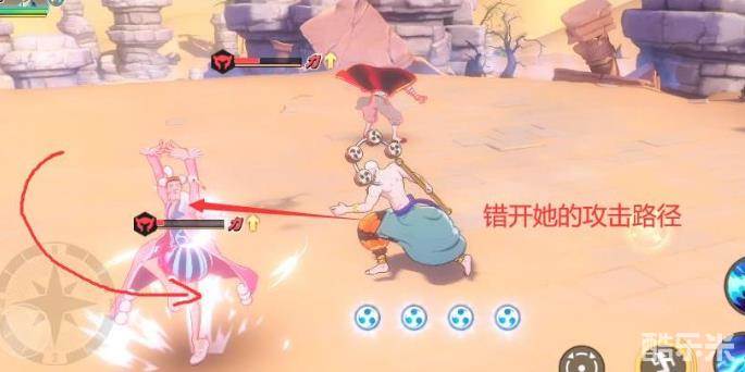躲避技巧:因为是弧线攻击,所以我们可以直接朝她移动,错过其攻击路径。或者直接离开当前位置。