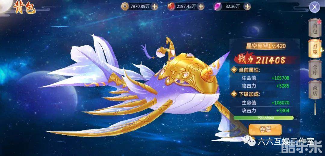累计充值500:SR幻武·缤纷夏日*1、【图鉴】十二星座自选*1、注灵石*20、进阶丹任选*100