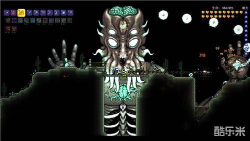 玩家在《泰拉瑞亚》的世界中不仅会遭遇“克苏禄之眼”的boss、克苏鱼,还会遇到喜闻乐见的“邪恶大脑”和“肉山”,更不用提很容易让人联想起克苏鲁怪物的“月球领主”。这些克苏鲁风格的怪物形象,与克苏鲁风格的游戏文本交相辉映,让《泰拉瑞亚》的冒险之旅变得更加神奇,其游玩体验也显得更为严肃和风格化。