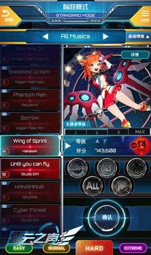 标准模式之中,除了可以体验到所有已经通过剧情模式、人物故事模式或者商店解锁的歌曲,还能根据自己的喜好选择难度。完成不同的难度都可以收集徽章,完成关卡的话可以获得CLEAR徽章,全部连击可以获得ALL COMBOO徽章,而拿到P徽章的条件是ALL PERFECT,对于喜欢挑战极限的音游玩家来说是不是超级有成就感呢?