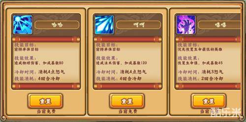 2) 玩家也可以对4个技能进行重置行为,玩家通过重置可以任意搭配技能的效果直到获得想要的技能。