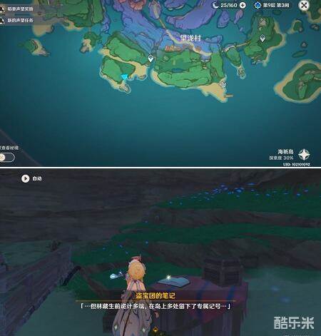 我们要先去海祇岛南方洞窟,打败盗宝团找到笔记。